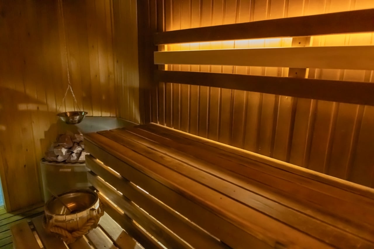 Окунитесь в атмосферу уюта и комфорта: вас ждет просторная финская парная с удобными полками и мощной печью 12 кВт с парогенератором, где можно как расслабиться, так и основательно попариться.