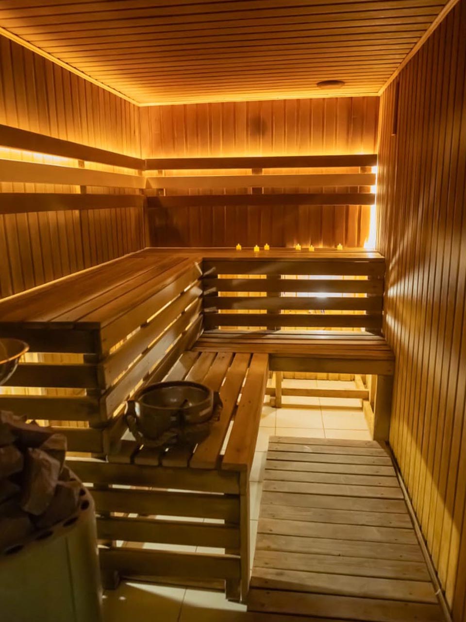 Окунитесь в атмосферу уюта и комфорта: вас ждет просторная финская парная с удобными полками и мощной печью 12 кВт с парогенератором, где можно как расслабиться, так и основательно попариться.
